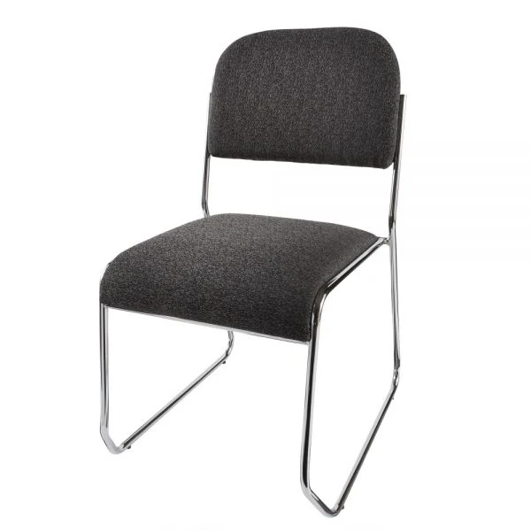 Sled-Base Padded Fabric Seat, Fabric Back Stacking Chair 22″ Seat Width, Black Seat/Chrome Frame, Quantity: 1 – Give everyone a seat at the table with this Realspace sled-base stacking chair. Temporary seating with added comfort, these padded, upholstered chairs are easy to drag in at the last minute to accommodate unexpected meeting attendees.