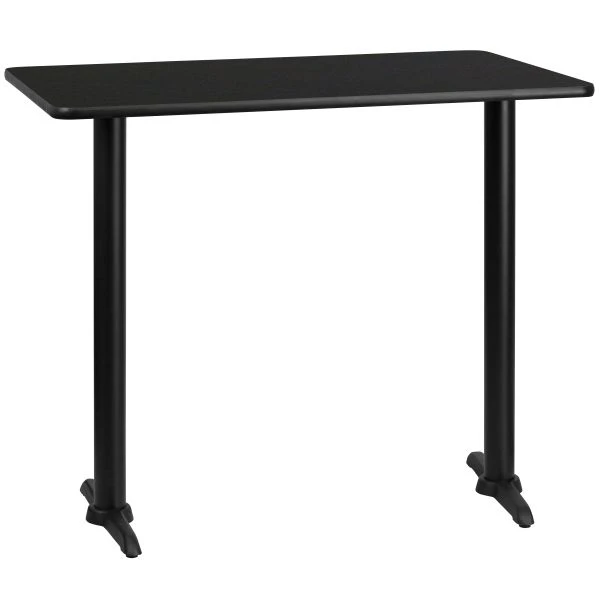 Stiles 30” x 48” Rectangular Black Laminate Table Top with 5” x 22” Bar Height Table Bases – Complete your restaurant, break room or cafeteria with this bar height table top and base configuration. This set is designed for commercial use to withstand the daily rigors in the hospitality industry. This set will also make a great option for your home as a dining table or in the rec room. The reversible black or mahogany top allows you to choose your color of choice and then affix to the base. Surface is heat, scratch and moisture resistant. Use a mild detergent and water, dry clean to keep your tables spotless. Whether you are just starting your business or upgrading your furniture this bar table set will complete the look.