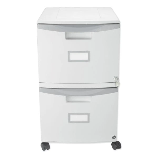 Storex Two-Drawer Mobile Filing Cabinet, 2 Legal/Letter-Size File Drawers, Gray, 14.75″ x 18.25″ x 26″ – Functional and lightweight, the Filing Drawer is the perfect storage solution for those in need of professional and affordable filing. The durable polypropylene construction allows this cabinet to be stackable as well as moisture and rust resistant.