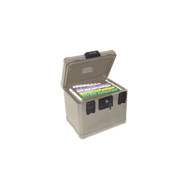 SureSeal By FireKing Fire and Waterproof Chest, 0.6 cu ft, 16w x 12.5d x 13h, Taupe – Designed to meet the security needs of today’s consumer by protecting CDs/DVDs, flash drives, portable hard drives and other valuables from fire and water damage. Accommodates letter- and legal-size documents. Dual compression latches and handle. Waterproof for two hours.