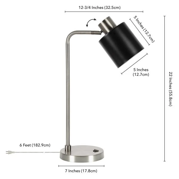 Thew 20.75″ Tall Table Lamp with Metal Shade in Nickel/Black – Brighten up your work space or bedside with this simple and sophisticated desk lamp. The all metal body and shade highlights the best of industrial design.