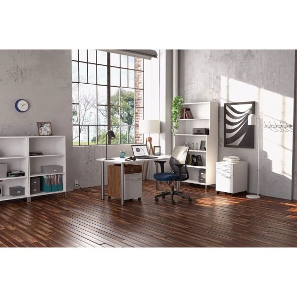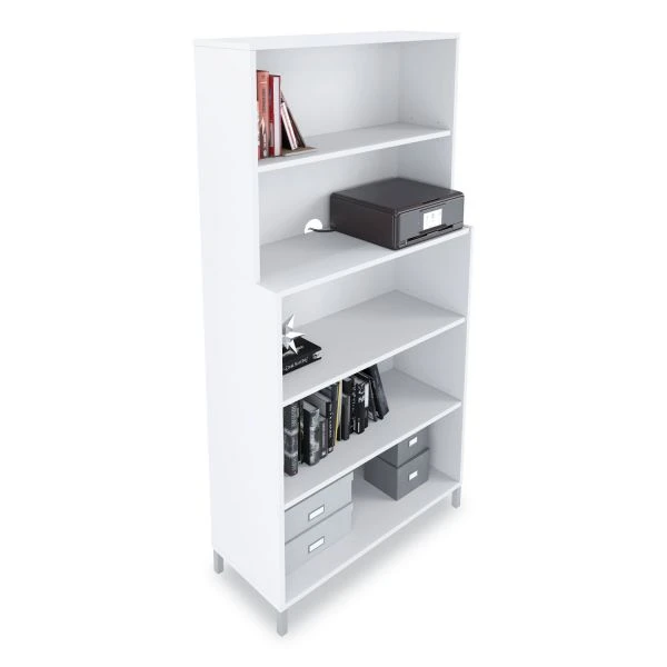 Union & Scale Essentials Laminate Bookcase, Five-Shelf, 35.8w x 14.9d x 72h, White – Boost productivity through increased organization. Sharp lines bring contemporary styling to your office. Adjustable shelving lets you create a customized setup. Cable management grommet keeps cords and wires out of sight, making this bookcase great for a phone, fax or other office electronics. Includes wall attachment hardware for safety.