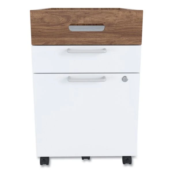 Union & Scale Essentials Mobile Pedestal File, Left or Right, 2-Drawers: Box/File, Legal/Letter, White/Espresso, 15.5″ x 21.2″ x 24.2″ – Sort paperwork, organize supplies and streamline your desk setup. Spacious file drawer accepts letter and legal document sizes. Box drawer keeps notepads, pens and other items close at hand. Open tray-style top shelf provides additional storage for frequently used work materials. Integrated lock to protect sensitive company information. Five rolling casters allows cabinet to glide smoothly across your office floors.