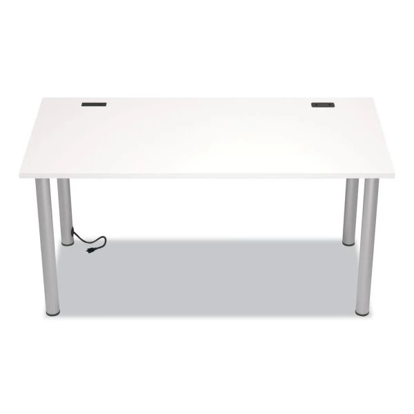 Union & Scale Essentials Writing Table-Desk with Integrated Power Management, 59.7″ x 29.3″ x 28.8″, White/Aluminum – Power up and create a fully functional workspace. An attractive laminate worksurface is right at home in the contemporary office environment, and sturdy metal legs deliver the strength and stability modern office workers demand. But that’s just the beginning…this unique electric-powered writing table-desk also features a fully integrated power management system that’s completely hidden from view, fully embedded into this desk’s design. A worksurface-grommet conveniently provides both AC outlets and USB ports to power everything from desktop computers to smartphones. Plugging into your home or office outlet is easy too, thanks to a handy AC-plug access door in the desk’s front-left leg. Easy to assemble.