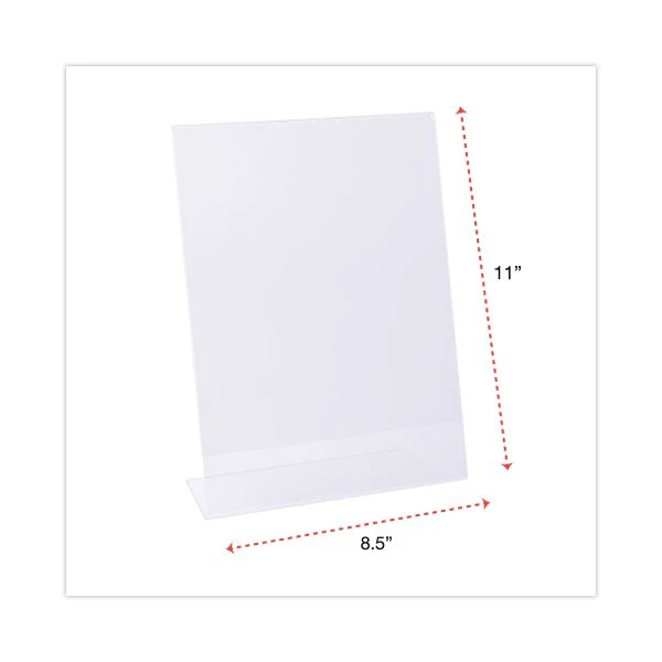 Universal Clear L-Style Freestanding Frame, 8.5 x 11 Insert, 3/Pack – Universal Clear L-Style Freestanding Frame is ideal for schools, restaurants, reception areas, and just about anywhere you’d like to display important information. The freestanding, angled L-style design ensures easy-viewing while enabling both horizontal and vertical display orientations. An economical frame that is made entirely of durable, shatter-proof material. Keeps photos and documents on display clean and protected from wear and stains.