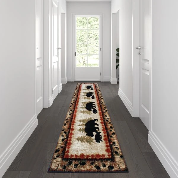 - Bear and Cub 3′ x 10′ Area Rug in Brown, Beige, Black, and Green for Indoor Use