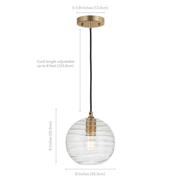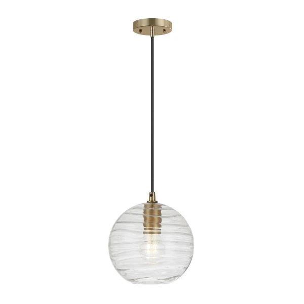 Wayve 8″ Wide Textured Pendant with Glass Shade in Brass/Clear – The rippled glass of this spherical pendant reflects light in a magical way, adding a glimmer to any room.
