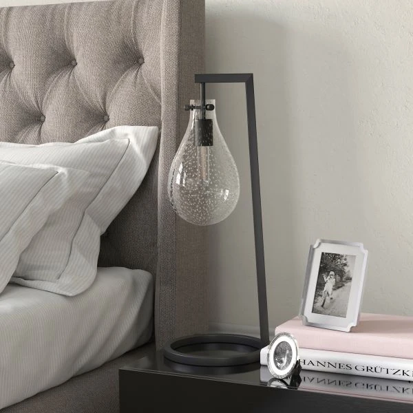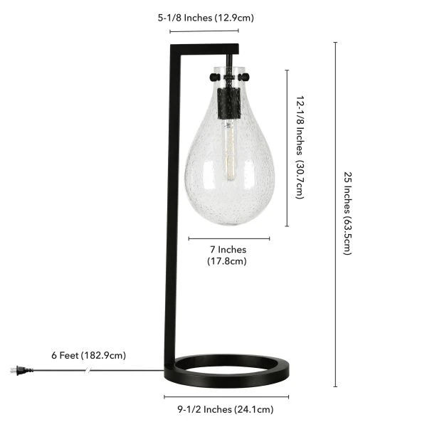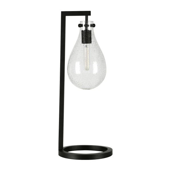 - Paired with a seeded teardrop glass shade.