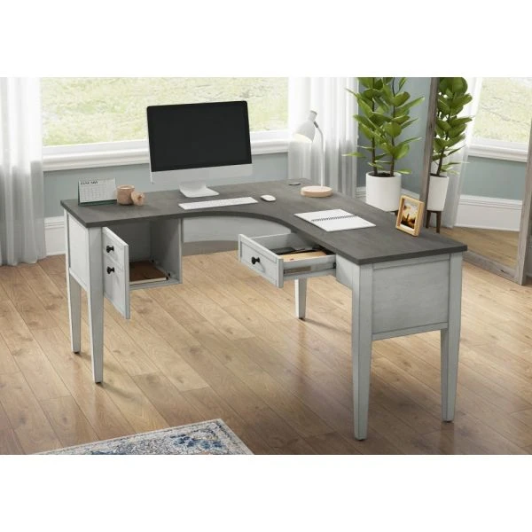 Whalen Lagron 60″W Wood L-Desk, Arctic White/Shadow Gray – Set up this Whalen desk and get to work. The sturdy wooden desk is built for strength and beauty. The L-shaped desk offers an enclosed cabinet and accessory drawer with high end soft close features for ample storage options.