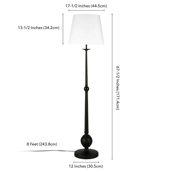 Wilmer 68″ Tall Floor Lamp with Fabric Shade in Blackened Bronze/White – Cast a warm glow over your living room or bedroom with this traditional 68″ floor lamp. Crafted from metal and finished in classic blackened bronze tones, this standing lamp features a round base and a fabric drum shade to capture a cozy, modern farmhouse vibe.
