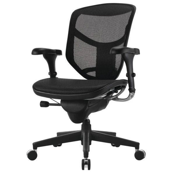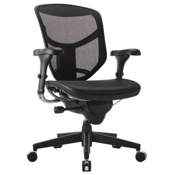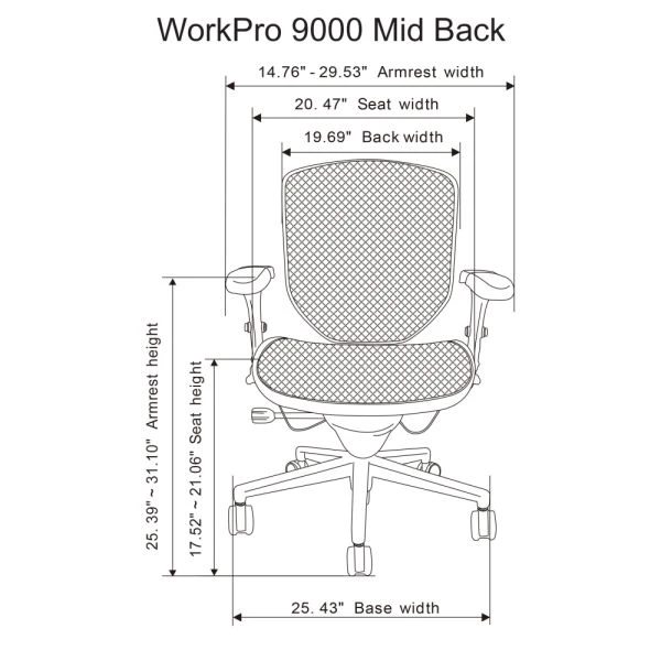 WorkPro Quantum 9000 Series Ergonomic Mesh/Mesh Mid-Back Chair, Black/Black, BIFMA Certified – Give your office a modern look with this black WorkPro Quantum 9000 Series ergonomic chair. A lumbar support feature helps improve posture, while the mesh back material optimizes airflow to keep you cool. The waterfall seat cushion minimizes leg strain for dependable comfort. This WorkPro Quantum 9000 Series ergonomic chair has a nylon frame with a steel under-core for enduring strength and durability.