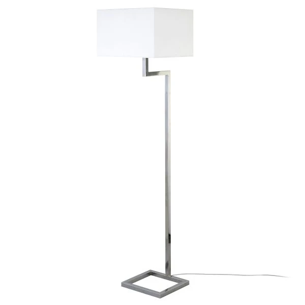 Xavier 64″ Tall Floor Lamp with Fabric Shade in Polished Nickel/White – This timeless floor lamp updates a classic look with a modern geometric twist. Its square offset base can be tucked under a couch or armchair, perfect for compact spaces or when you need a closer light to read by. The squared-off silhouette is topped with a rectangular shade in crisp linen, following the angular design of the base. Perfectly styled for both transitional and modern spaces, this fixture can blend in or stand out in many décor styles and color schemes.