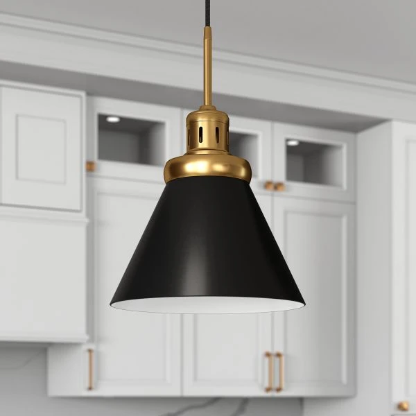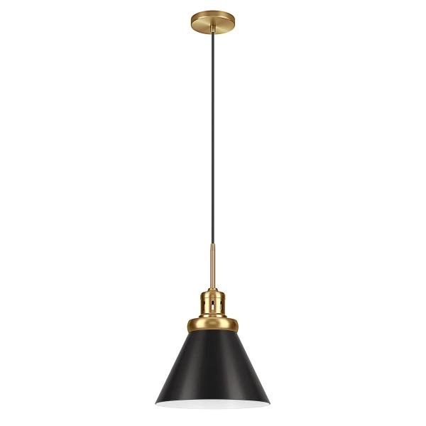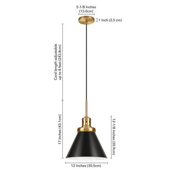 Zeno 12″ Wide Pendant with Metal Shade in Brushed Brass/Blackened Bronze – This industrial pendant light is perfect for illuminating your entryway, dining room or kitchen island. Featuring a cone-shaped shade, this traditional hanging light is crafted from metal in a handcrafted finish for a retro-inspired design. The 8′ foot adjustable cord lets you customize this fixture to fit your space perfectly.
