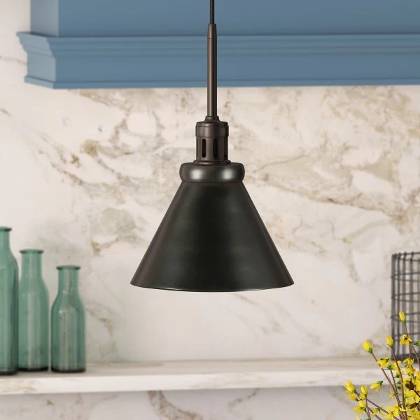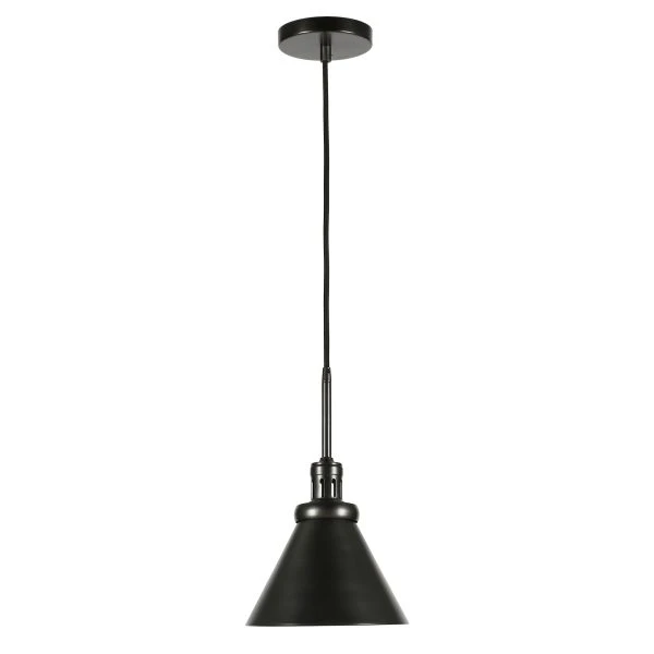 Zeno 8.5″ Wide Pendant with Metal Shade in Blackened Steel/Blackened Bronze – This industrial pendant light is perfect for illuminating your entryway, dining room or kitchen island. Featuring a cone-shaped shade, this traditional hanging light is crafted from metal in a handcrafted finish for a retro-inspired design. The 8′ foot adjustable cord lets you customize this fixture to fit your space perfectly.